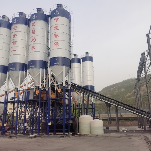 Aggregates are batched by a batching machine and conveyed via a belt conveyor; powdered materials are conveyed via a screw conveyor. All raw materials are precisely measured and fed into the mixer for mixing.